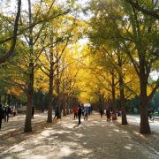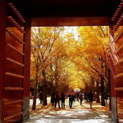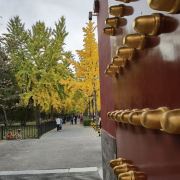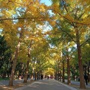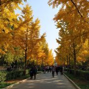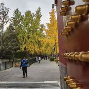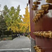 地坛公园银杏大道位于公园北侧,一进北门就能看到壮观的银杏大道。这是北京非常古老的银杏大道,有些银杏树据说在建造地坛的时候就已经种上了。秋意未浓时,这里已有很多游客观赏银杏,摄影爱好者也拿着长枪短炮一取美景。