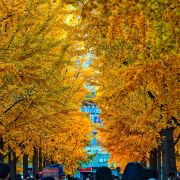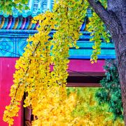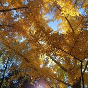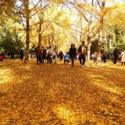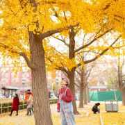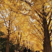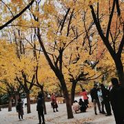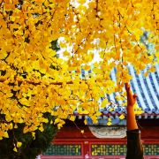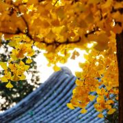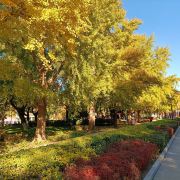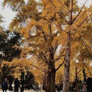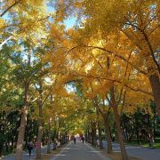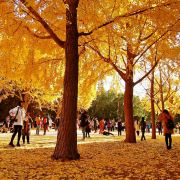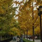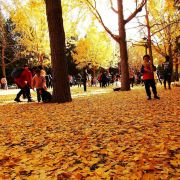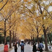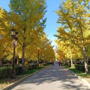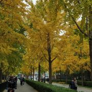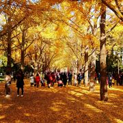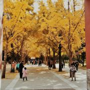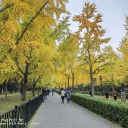 地坛公园的银杏树干粗壮,树形非常漂亮,等到树叶变化,这里就成为了一个柠檬黄的童话世界。站在笔直的银杏大道上,一直能望到尽头的神坛。金黄色的银杏树叶铺满一地,仿若金色的地毯一般,在阳光的照耀下显得光彩夺目。