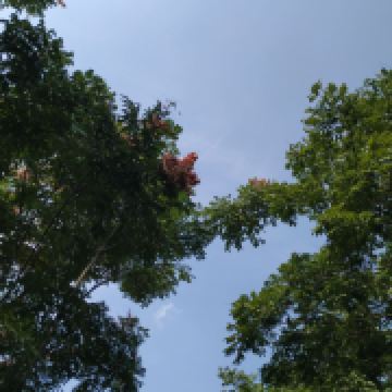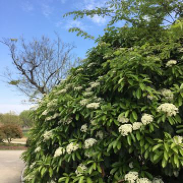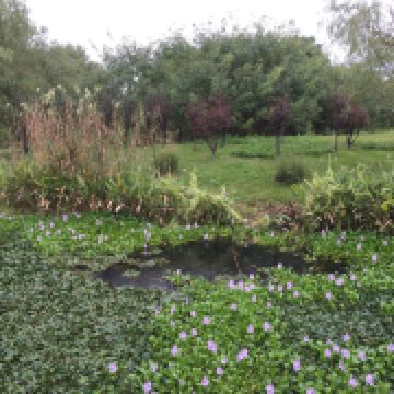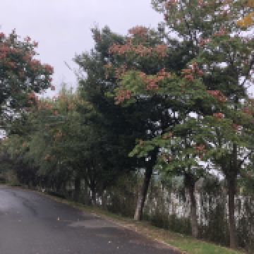 空气很好,植物品种很多,除了桂花、柿子树,还有芙蓉葵、蓝花鼠尾草、非洲菊、海州常山、彼岸花,也能看到菖蒲和凤眼蓝、菱角这些水生植物。