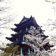 “中日樱花友谊林”,此林始建于80年代初,经过二十余年的建设添补,如今的樱花林从原有的12个品种、几百棵樱花树扩展成华东地区大的“中日樱花友谊林”,面积达100多亩、有50余个品种、近万棵樱花。2002年,又在樱花林内建标志建筑“赏樱楼”,高三层,翼然耸峙,为花海提神。每届阳春四月,樱花齐放,绚丽多姿,引人入胜。