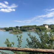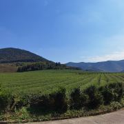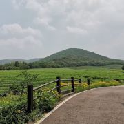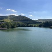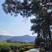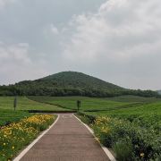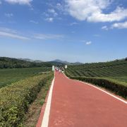 5分 超棒假期去宜兴玩,除了看竹海,还想看看有什么好玩的地方,一个偶然的机会查到龙池山自行车公园,看看介绍就觉得挺不错的,就决定去玩玩看。跟着导航走,路上看到很大的标识物就知道目的地到了,其实龙池山自行车公园,和龙池山风景区是2个口,虽然看到的风景基本相同,但是入口是在不同的地方,自行车公园只能租到单人自行车和双人助力车,风景区里可以租到单人电动自行车。双人助力车很容易掌握,就是踩油门就加速,轻轻松一点,就减速,但是即使你油门踩到底,速度也不会快,车子都是被限速的,即便没学过开车也很容易掌握这辆小车。景区很大,靠徒步走恐怕是够呛的。小车开了一段没有风景的乡间小道后,忽然映入眼帘的是一幅画中的景色,在没有风力作用下的湖面,让人瞬间平静安逸,此时此刻面对美景,让脑子放空,哇好不惬意,久待城市的我非常喜欢龙池山的此物此景,水景合一。小车再次出发一路向上,就会看到一片绿油油的茶林,随着坡道的向上,茶林延绵不断,波澜起伏,静中有动,动中显静,美不胜收,简单的文字很难形容心中的感觉,建议大家来这里欣赏欣赏,亲自体验那份难得的平静。