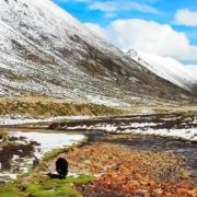四季积雪覆盖,夏季(7-8月)山坡草甸青绿,牦牛成群,冬季严寒。