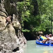 We booked a half day four-in-one trip with Elephant trekking/bathing/play & sightseeing at Huay Tho Waterfall through the hotel travel desk. It took about 40 minutes to reach from our hotel at Ao-Nang to the national park. The tour started with visit to ‘Huay Tho Waterfall’ followed by Elephant trekking through jungle/water streams, bathing etc. The elephants were cute and lovable. The trip was memorable.