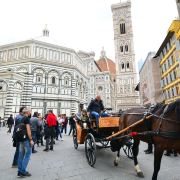 主教座堂广场是佛罗伦萨的精神核心和历史中心的灵魂所在,已被联合国教科文组织列为世界文化遗产。在这里,您可以一览城市的主要古迹,感受历史、艺术与美的集中展现,让人目不暇接。广场上矗立着圣母百花大教堂,拥有布鲁内莱斯基设计的圆顶、乔托设计的钟楼以及洗礼堂,周围环绕着历史建筑和大小博物馆。这一切共同构成了佛罗伦萨无与伦比的文化景观。