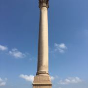 庞培柱耸立在塞拉比尤姆神庙(Temple of Serapeum)的废墟上,需要攀登上100级台阶才能抵达。庞培柱是一根高22米的巨大圆柱,用红色的阿斯旺花岗岩砍凿而成,这就是著名的庞培柱,它赫然耸立在罗哈克提斯(Rhakotis)山丘的遗迹上,亚历山大大帝就是在这里长大的。数个世纪中,庞培柱已经成为亚历山大的主要景点,它的主体是轴状的锥形花岗岩,地基深达2.7米,顶端是精美的科林斯柱头。庞培柱底部的碑铭显示,圆柱建立于公元291年,是用来支撑戴克里先(Diocletian)皇帝的雕像的。