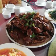 吃饭去镇上吃的,羊肉汤(非常有名),酱羊蹄五元一个,煎饼不限量,再喝一碗羊肉汤,晚上饭都省了