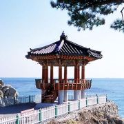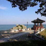 前往松日亭须经过竹岛公园的漫步道。这条漫步道由圆石铺成,沿途树立着不少纪念雕塑,并有长椅供人休息。从松日亭沿着漫步道回到竹岛公园的入口,就能前往。在,可别忘了游览红、白灯塔,似曾相识的它们,你想起它们都在那些韩剧中出现过了吗?