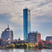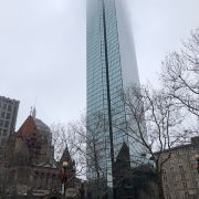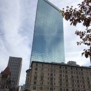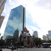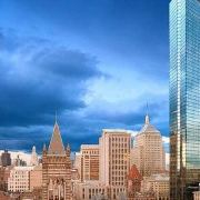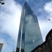 约翰·汉考克大厦建于1967-1975年,是由有名华裔建筑师贝聿铭设计的。大楼共63层,高241米,是波士顿非常高的建筑。大楼的外墙全部用浅兰色的镜面玻璃,从远处看宛如一面巨大的明镜,又如一张直立的明信片耸立在城市中间。