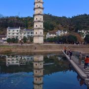 浙源龙天塔耸立在浙源凤山村头小溪旁。始建于宋,后毁,复建于明万历年间。传因凤山村多火灾,村人遂建此塔以镇火神,并取名“龙天”,与“凤山”村名呼应,有“龙凤呈祥”之意。塔高30余米,为砖石结构,六面七层。腰檐层层展出,其宽度向上逐层递减,每层檐角悬吊有铁风铃,每当风起,铃声悦耳。内置木制扶梯与楼板层,扶梯而上,登顶层远眺,尽收古老的千烟之村于眼底。赏古屋飞檐戗角与天空的灵动;惊周遭山脉奔塔而来的气势;听古老得尽乎于传说的故事,让人不经意里错越时空。