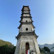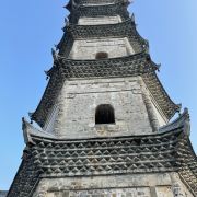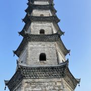 4分 满意龙天塔每层檐角悬吊铁风铃,每当风起,铃声铮铮悦耳。塔内有阶梯上升,可直登顶层远眺。