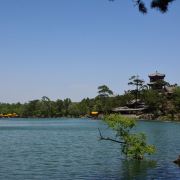 在澄湖东侧,仿江苏镇江金山景色而建。此山三面环湖,一面临溪,很有江南水乡秀色。“天宇咸畅”正殿北面的上帝阁,是山庄湖区的较高点,原供玉皇大帝的塑像,阁高3层。