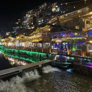 西江千户苗寨的夜晚是温馨而宁静的,每到黄昏时分,千家万户就亮起了灯。随着天色越来越暗,西江千户苗寨变成了灯的海洋,可以看到苗寨呈现那牛头的形状。为使游客更好地观赏西江夜景,景区在路边修建了观景台,还开通了观光车。这样的夜晚邀上您的家人、朋友、爱人漫步在月光下、风雨桥边,是如此的浪漫,如此的难忘。