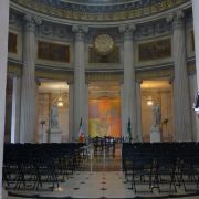 皇家交易所拥有庞大的尺寸和精细的配件,反映都柏林在18世纪的地位和威信。这座新古典主义建筑包括一个中央入口大厅,有一个巨大的圆顶,由12根圆柱支撑,其周围可供商人漫步和 讨论商务。