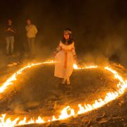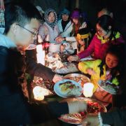 4⃣晚饭后,风停云散,不远处架起一堆篝火