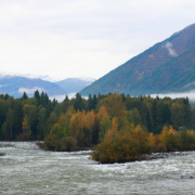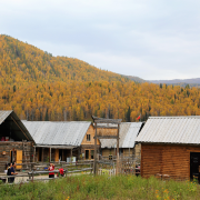 禾木草原被禾木河分为两半,阴坡绿草茵茵、繁花似锦、蜂飞蝶舞,阳坡森林茂密、苍翠欲滴、野趣横生。喀纳斯地区比较大的图瓦人村庄——禾木村,就坐落在广袤的禾木草原。