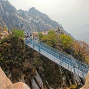 景区主要由三皇寨与少林寺组成,联票100元。一般游客只去了少林寺,跟团就是这样,其实少林寺不大,1、2小时就能转完,个人觉得还是该先去三皇寨看看。最快捷的方式就是在少林寺游览完后乘坐索道30元到少室山悬空栈道,一直沿着山路台阶走到三皇寨,还能经过著名的惊险的悬索吊桥,沿途山势陡峭险峻,奇峰异观,是嵩山森林公园的重点景区。