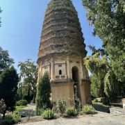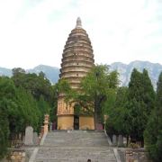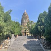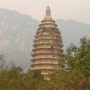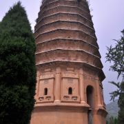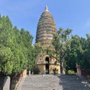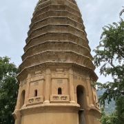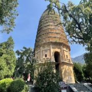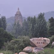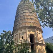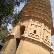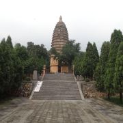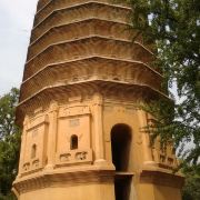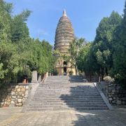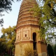 嵩岳寺塔初建于北魏正光四年(公元523年),历经1400多年风雨侵蚀,仍巍然屹立,是中国现存早的砖塔,也是全国古塔中的孤例。嵩岳寺塔为砖筑密檐式塔,也是的一座十二边形塔,其近于圆形的平面,分为上下两段的塔身,都与印度“stupa”相当接近,是密檐塔的早期形态。它保留着印度阿育王时期佛塔的特色,目前这一时期的佛塔,在印度都找不到了,许多研究印度阿育王时期佛塔的学者和专家必须要到嵩岳寺塔来。嵩岳寺塔塔高37.6米,底层直径10.16米,内径5米余,壁体厚2.5米,由基台、塔身、15层叠涩砖檐和宝刹组成。塔基随塔身砌作十二边形,东、西、南、北四面各辟一券门通向塔心室,四正面券门与下段门道通,券门上有印度式火焰券门楣,其余八面各砌出一座单层方塔形壁龛,各转角处砌壁柱。中部是十五层密叠的重檐,用砖叠涩砌出,檐宽逐层收分,外轮廓呈抛物线造型,其意匠显然来自中国的重楼,其内部则是一个砖砌大空筒,有几层木楼板。高处有砖砌塔刹,通高4.75米,以石构成,其形式为在简单台座上置俯莲覆钵,束腰及仰莲,再叠相轮七重与宝珠一枚。该塔塔心室作9层内叠涩砖檐,除底平面为十二边形外,余皆为八边形,塔下还有地宫。
