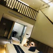 因为是元旦假期来的,价格浮动了一点,但性价比还是很高的,和老公住的是一个影院大床房,一面墙可以放投影,前面还有小沙发,给妈妈和小姨订的是亲子家庭房,是一个loft复式,上下都有一张大床,房间都带浴缸,装修风格也很赞,是我喜欢的类型,服务也不错,除了因为下雪导致空调除霜停止运转了一阵子,不过服务员也很耐心在帮着报修,后来空调也好了~这两个房间才一千多,真的很划算~