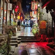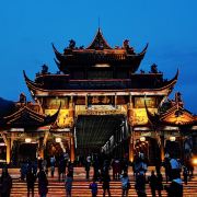 看松茂古道起点:都江堰西街为松茂古道起点,沿岷江上溯640里至松潘,在公元七世纪时就已是一条商贾云集的交通大动脉,国画大师董寿平的旧居隐逸其间。