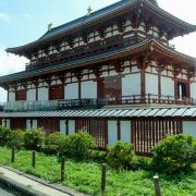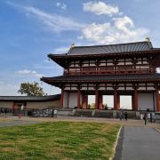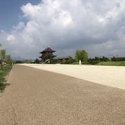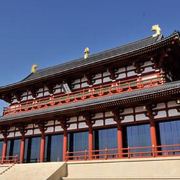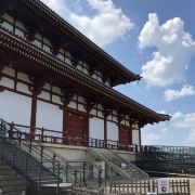 平城宫遗址就是这段历史古老的见证者了,由于受到中国唐代的深远影响,平城宫的大体结构是仿造长安城和洛阳城为模板修建的,主街为朱雀大街,将宫城分为东西两京。可惜的是,古代日本很多的建筑都是木造结构,火灾发生在所难免,所以我们现在看到的平城宫已经算不上是原始的模样,而是近代动用了很大的人力物力陆续复原后的建筑,据说光是一座南门朱雀门(古时外来使者、官员出入都城的入口),就花了11年的时间,直至2004年才修复完工。朱雀门是遗址内主要参观的建筑,朱红色的梁柱和洁白的外墙在阳光的映照下,显得简洁且安宁,柔美中又彰显着华贵。此外,东园庭院也非常美丽,在这片绿林花丛中走走,相信会感到心情愉悦吧。