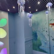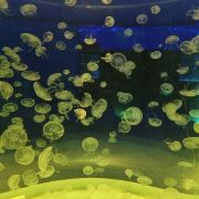 外形如同一个巨大的水母,身姿舒展,遨游在寿光弥河之滨,寓意着“人与海洋和谐发展”。是集海洋生物观光、科普教育、水族展览、萌宠互动、儿童游乐、餐饮休闲为一体的大型旅游综合体,总建筑面积4.5万平方米,是鲁中地区大的单体海洋馆。拥有海豚、鲨鱼、企鹅、小爪水獭、水母、海狮、北极狐、北极狼、耳廓狐、小浣熊、各类蜥蜴、蛇类、鱼类等上百种珍奇海洋、陆地生物。