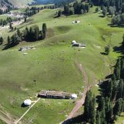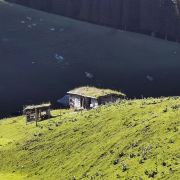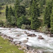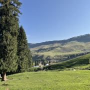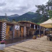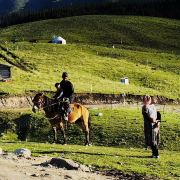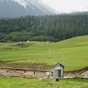 琼库什台草原上的琼库什台村是个哈萨克牧民村庄,它是天山半坡的一个小村,乌孙古道的北入口,以前没人知道它的存在,自从天山的鲜花显现于世,它的名字才被人了解。琼库什台几乎所有的民房都是木建筑,有的房子是由整根原木搭建,有的房子则将原木从中间一分为二,通过掏、榫、拱等各种工艺搭起来的。村庄四面环山,房屋依水而建,村里人畜饮水及生活用水均来自库尔代河,河谷较宽,常年水流不止。