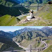 🔸我们是从赛里木湖南门出来,然后在进入赛里木湖隧道前往右边的岔口走水泥路,能够通向果子沟的高处,可以眺望整个果子沟大桥,非常的震撼。