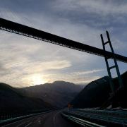 果子沟大桥是国道045线赛里木湖至果子沟高速公路的一座桥,桥梁全长约700米,桥面距谷底净高约200米。它是一座斜拉高桥,集新技术、新结构、新工艺、新设备“四新”于一身,是新疆公路建设史上一次重大突破。