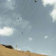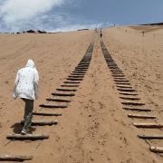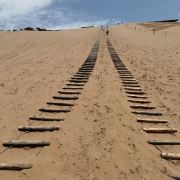 沙漠扶梯位于中卫市沙坡头区沙坡头南区内,建在72米高的沙坡上,分为三截,总长度达120米。乘坐长长的手扶电梯上去,就可以到达坡顶,同时还可以观赏沙漠美景。