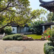 整座园林楼栏虚设,作美人靠;楼顶飞檐翘角,取势空灵。