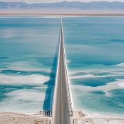 独一无二的路面:道路由盐湖结晶压实而成,两侧是翡翠色的盐湖和雪白的盐花,晴天时宛如“天空之镜”,航拍效果震撼。