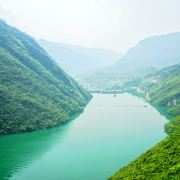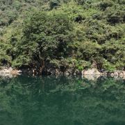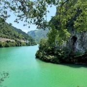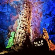 在武隆汽车站转乘直达芙蓉洞景区的班车,票价约8元,时程约50分钟即到,可先到芙蓉江,芙蓉江在武隆段的高峡平湖游览区,江水碧绿发蓝,在芙蓉江景区内,猕猴成群可见。可以乘索道俯瞰如翡翠般的江水,还可以乘游轮置身于这绿色之中,领略大自然的美妙。