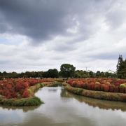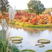 秋景园由枫林小径、枫叶岛、星空草坪、骑士乐园、秋枫亭组成。园内植有20多种秋色叶树,如各种鸡爪槭园艺品种、挪威槭、美国红枫、花叶三角枫、光叶榉、无患子、乌桕、黄连木、卫矛、枫香、黄栌、柿、榔榆、大叶榉等,还配置了大量的丹桂、金桂、银桂和多种观赏草。观赏期在11月中旬至12月中下旬。