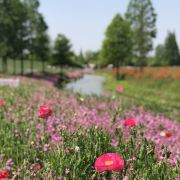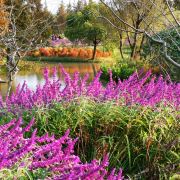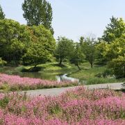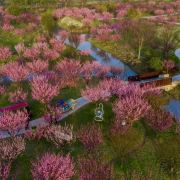 樱花园由樱花湄、海棠坞、玉兰汀组成。山樱、早樱、晚樱、海棠、美人梅、二乔玉兰争当岛主,弯弯曲曲、高高低低的园路将9岛相连,溪绕岛、水漾花,细语绵绵。从空中俯瞰,犹如多彩的蝴蝶翅膀,展翅欲飞。赏花期为3月中旬至4月中下旬。