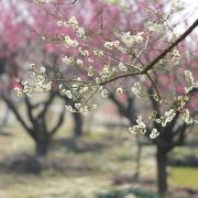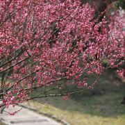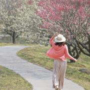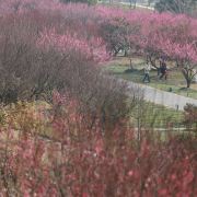 梅园由梅溪香岭、梅影曲径、梅宫探梅3个各具特色的小园组成。园内设有10余处登高赏梅点,如疏影坡、凝香台、烟雨亭等。另外,这里还修建特色小桥,园路曲折迂回,岛上草坪密布,梅溪弯曲荡漾。园里梅花品种繁多,涵盖宫粉、朱砂、绿萼、江梅、美人梅等五大类,植有3000余株、60多个早、中、晚品种,以白、粉、红花颜色为主。观赏期在2月中旬至3月中下旬。