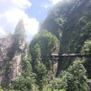 御笔峰是大明山三神峰之一,原名“大明文笔峰”,是玉皇大帝投笔凡间所成。因岩壁上刻“御笔生花”,因此称为御笔峰。此峰造型独秀,远、近、前、后景致各不相同,赛过黄山的梦笔生花。在仙境秘道上行走,此峰吞云吐雾、忽隐忽现,尤其是当我们途径几个U型回弯时,御笔峰时而隐匿、时而显现在远处的群山之中,更加灵动神奇。