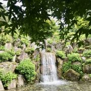 山中湖花之都公园位于海拔1000米的距富士山较近的山中湖畔,是一处群芳争艳的大花园,有花圃、有温室,还有浑然天成的人工瀑布。