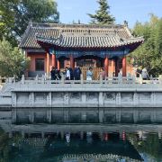 为纪念宋代女词人李清照而修建的百脉泉景区-清照园,是一座集中国南北园林风格于一体的园中园,建有易安楼、海棠轩、吟风榭、燕寝凝香、漱玉堂、碑廊等建筑,园内有漱玉泉、梅花泉等泉眼。
