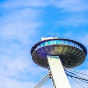 UFO观景台建在SNP大桥上,横跨多瑙河。与城中其他各式的古建筑不同,UFO观景台是一个超现代化的建筑,有未来之感,也是名字的来源,远远望过去很像西雅图太空针塔。观景台高95米,从底部乘坐高速电梯到顶楼只要45秒,玩得就是心跳!可以站在观景台边上看美丽小城的黄昏和日落,欣赏城中万家灯火,迷人的夜景。顶层还有纪念品商店和UFO餐厅,可以享受这悠闲一刻。