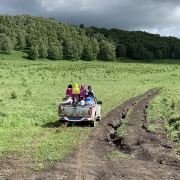 放眼望去,界河以北草原辽阔,丘陵起伏,山花烂漫,可见风吹草低牛羊肥的壮观景象。界河以南则是无边林海连天绿,又感受到人类改造大自然的惊人壮举。