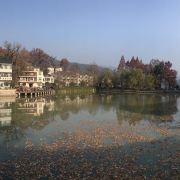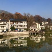 5分 超棒指南村是近年来声名鹊起的网红观赏秋景胜地。双休日,和同学结伴自驾前往,果然不虚此行。首先是当地重视旅游,一路指示牌清晰,便于自驾者沿正确道路到达目的地。村口附近一次性收取停车费,价格公道。景区内商铺很多,但文明经商,不吵闹喧哗,可货比三家,可买可不买。最后说一说指南村的风景。进村的主要道路地势较高,往里走可俯瞰一层层的梯田,颇有其气势,即使不是春天那般青葱茂盛,也是黄绿褐相间,如自由绘画的地毯。沿着主村路前行,左手边,望过梯田,接下来就是一潭秋水,阳光下倒映着白墙黑瓦的房屋和色彩斑斓的岸边花草树木,如镜子一般清晰,令人赞不绝口。整座村庄一定是经过整体规划的,房屋造型虽然不完全一致,但风格接近,互相融合,宅前屋后,种上花草树木,一座宅邸漂亮,整个村庄更是美丽。十二月初,气温还不是很低,村里无数高大的枫香树、杉树撑起满树的金黄或红褐,掩映着白墙黑瓦,无论从什么角度看,都是一幅画。网红不是浪得虚名的,不虚此行。