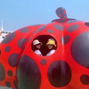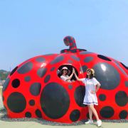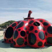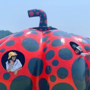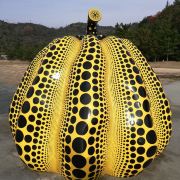 作者是这么评价自己的作品的追寻太阳的红色光芒一直来到宇宙的边际,来到了直岛的海面,变身成了红色南瓜。