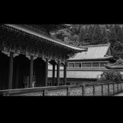 禅源寺居西天目山昭明、旭日、翠微、阳和诸峰之下,寺左清溪回绕,有青龙池经常波荡漾,寺前寺后古木挺秀,苍翠凌霄,浓荫匝地。禅源寺是韦驮菩萨应迹道场,乃浙江名刹之一,经过多次的重建重修,整体规模宏大,布局完整,寺院分为中、东、西三轴。如今,大雄宝殿以东建筑,在抗日战争时期毁于日机轰炸,已荡然无存,但遗址犹在;西轴线上建筑,尚基本完整。