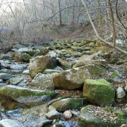 我来的时候虽然是冬天,但小溪中还有潺潺的流水,石头上绿色的青苔也并没有完全褪去,依稀可见那一片一片的绿,想来到了夏天,满眼都是遮天蔽日的绿,风景一定会更美。