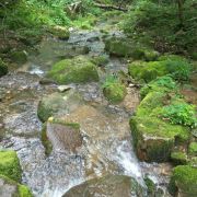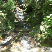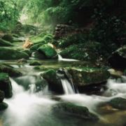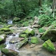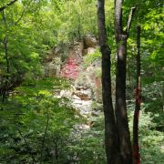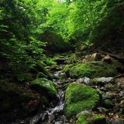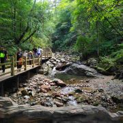 在炎热的夏季,谷内青峦叠翠,轻风习习。溪水峰回路转,或急或缓,微小的落差造成数不清的大小瀑布,如珠链、如绸缎,清澈的流淌在谷内长满青苔的圆石、枯木之间。