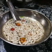 土家十大碗在土家族已经流传几百年了。来源于当地民间节庆及办酒席时惯用的方式,其特点是半荤半素、一菜两味、油而不腻,餐桌上看不到盘子,吃饭及装菜全部是蓝边大口碗。土家人生性好客、同时又爱面子,但由于以往生活贫困,无力安排好足量的菜肴,但是又想使餐桌上菜品的数量多,面子好,因此一般每桌都安排十碗菜,荤菜下面用素菜垫底,久而久之就形成了当地举办红白喜事时固定菜式。在以前土家族的餐桌上是看不到盘子的,桌子上放的全部是蓝边大口碗,而且桌上放的都是十碗菜。久而久之,土家族人就给宴席取名为“土家十大碗”。