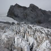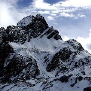 扇子陡是玉龙雪山的主峰,海拔5596米。由丽江平原中看扇子陡,像是一座竖立起来的银铧。攀登上雪山来看它,像一把白绫折扇展开在那里,所以有扇子陡和雪斗峰之称。现在由锦乡谷的草坪中仰望上去,又像一片白玉壳,三面作放射状指向天空,在碧天白云中闪闪发光,是玉龙雪山的标志。