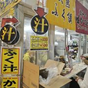 不光是下关,就连对岸北九州从事餐饮业的人士都来光顾唐户市场。拍卖现场可以自由参观。周五到周日的白天,唐户市场内还设有各种摊点,以新鲜的海产品为原料,加工成各种食物,可以就地品尝下关的美味。