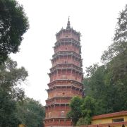 洪山宝塔位于武汉市宝通禅寺后山,始建于元朝大德十一年至延佑二年,为纪念开山祖师灵济慈忍大师所建,故又名灵济塔。塔为七级八方,砖石仿木结构阁楼式建筑,通高44.1米。