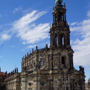 教堂新巴洛克式的塔楼建于教堂落成100年后,约有80多米高,是德累斯顿市的地标性建筑之一。登上塔顶可以俯瞰德累斯顿市的风光。